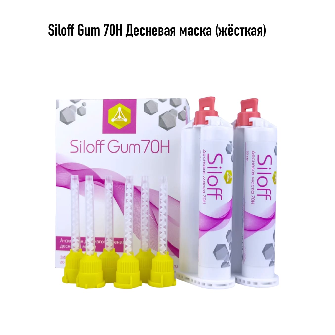 Комплектация и объём: 2 картриджа Siloff Gum ёмкостью 50 мл., 20 смесительных наконечников, 1 сепаратор.