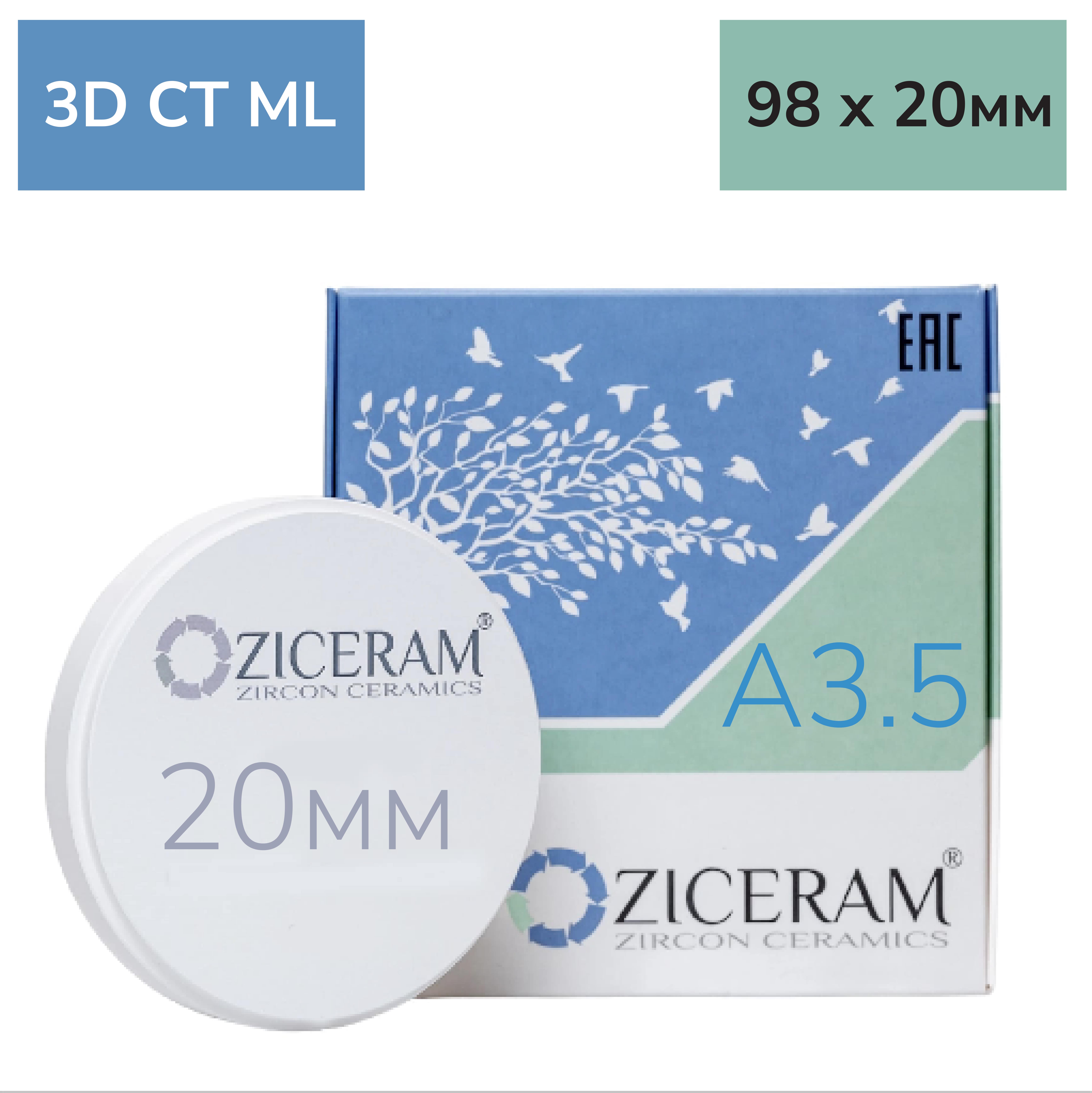 ZICERAM ML A3.5 98.5x20 СТ 3D диск диоксида циркония Zircon Ceramics