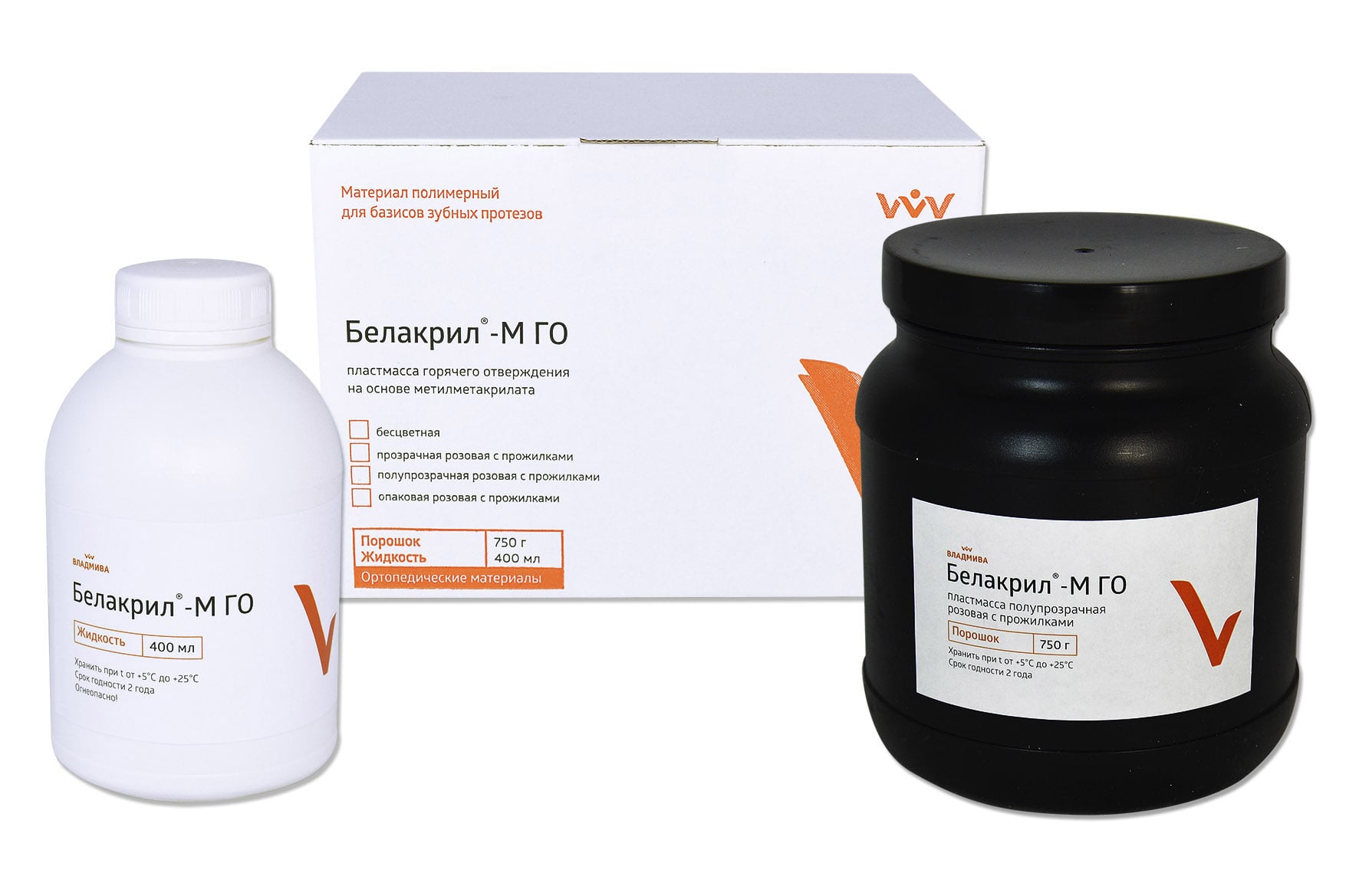 Жидкости Белакрил-М ГО С выпускаются в виде отдельного изделия и предназначены для смешивания с порошками пластмасс для несъёмного протезирования с длительным временем нахождения в пластичном состоянии.