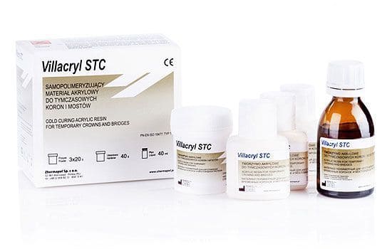 Пластмасса Villacryl STC для временных корон и мостов. Полиметакрилатный материал холодной полимеризации предназначен для изготовления временных коронок и мостовидных протезов, а также для ремонта коронок и мостовидных протезов, облицованных акриловой пластмассой. Три цветовые оттенка похожие на основные цвета естественных зубов и расцветки по VITA *- А1, А3, А4. Низкая температура самополимеризации, короткое время самополимеризации, хорошо переносится пациентом, не содержит тяжёлых металлов, нейтрален биологически. Упаковка: порошок - 3 флакона по 20 г, жидкость - 40 мТехнические характеристики;