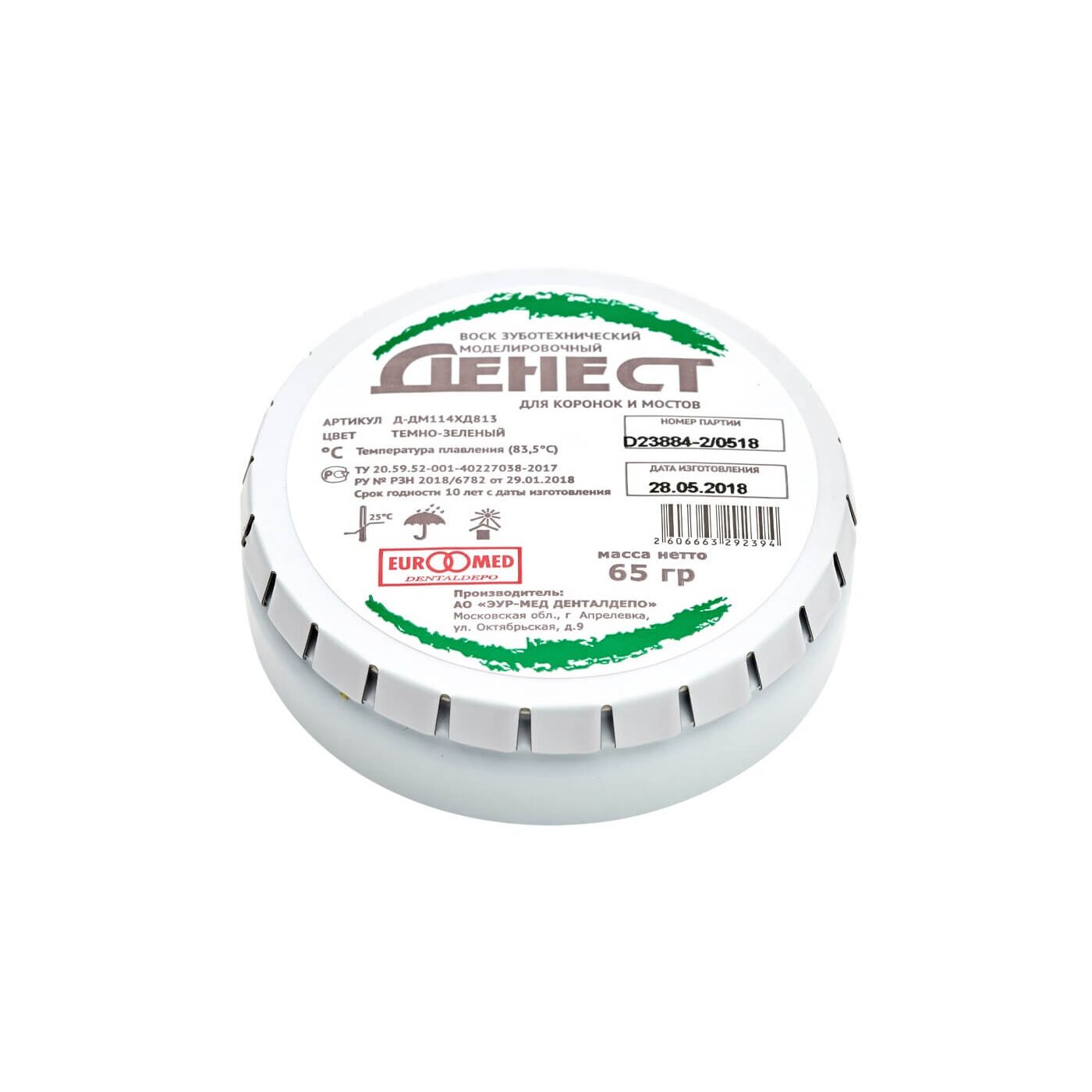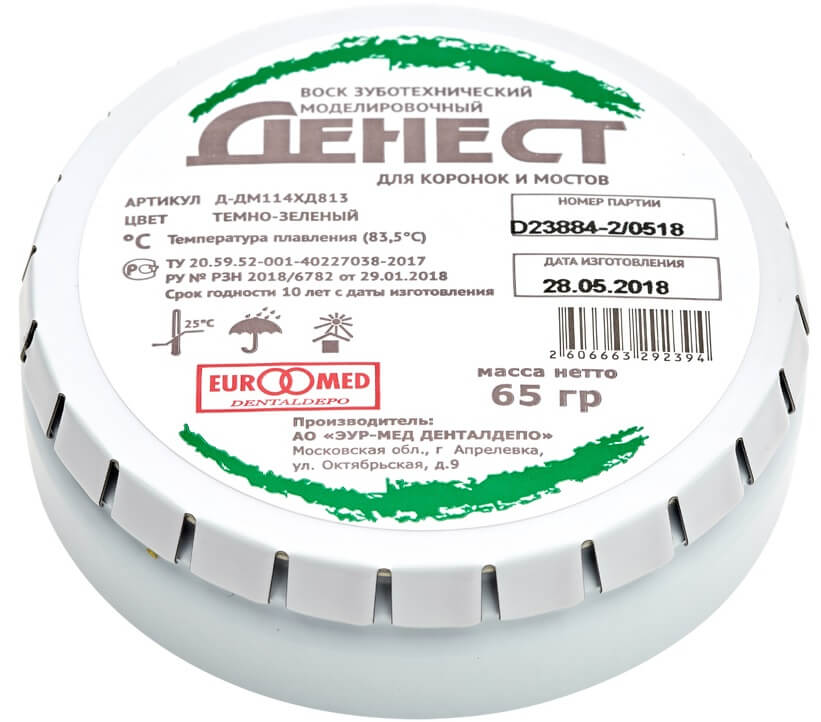 Воск моделировочный (ТЁМНО-ЗЕЛЁНЫЙ) для коронок и мостов Денест 65 г