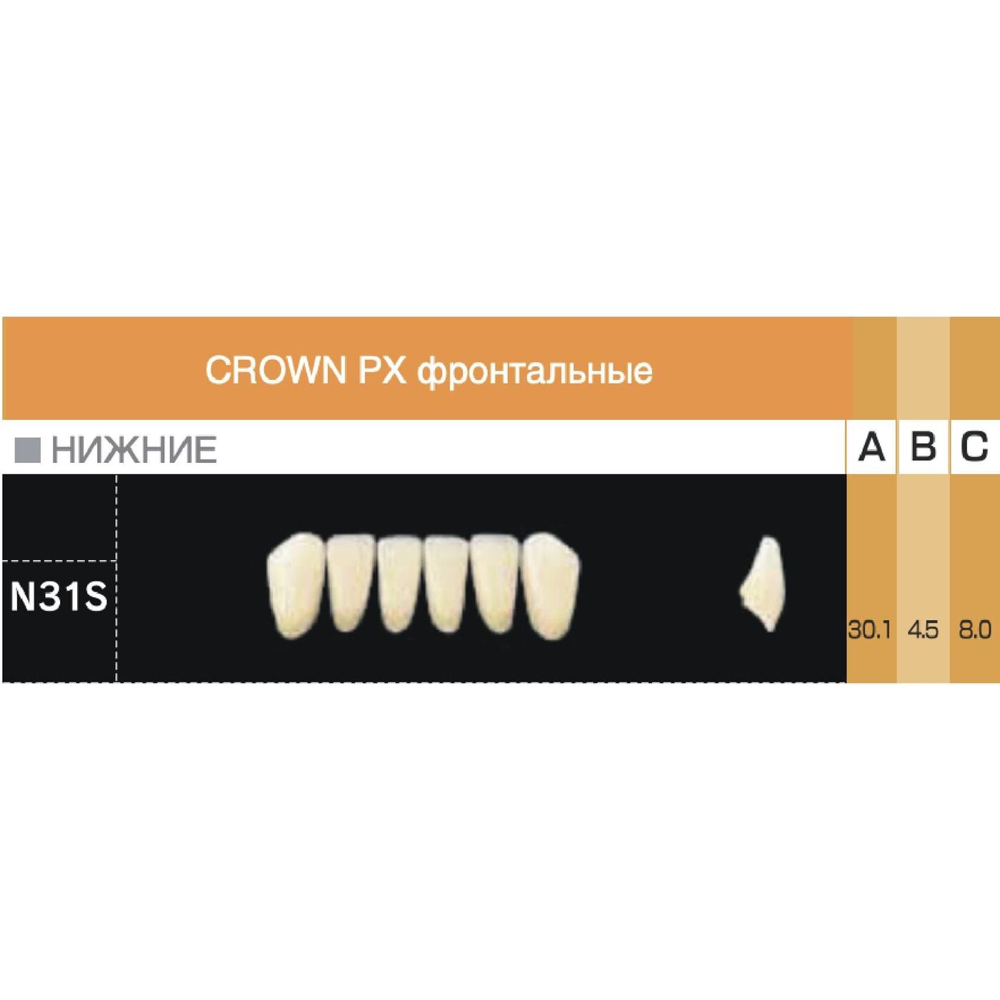 CROWN PX Anterior Зубы A2 N31S фронтальные низ