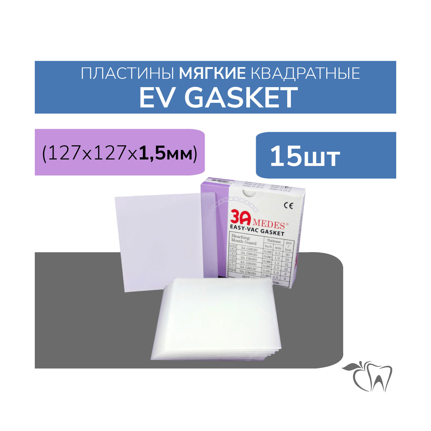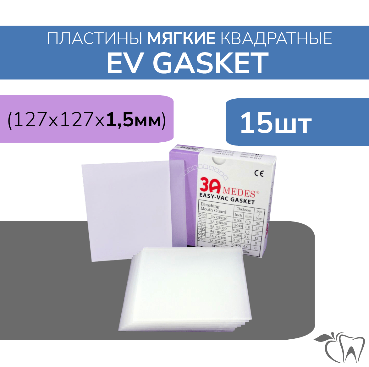 EV Gasket (Гаскет) мягкие 1.5 мм пластины для шин/капп квадратные 15 шт 3A Medes