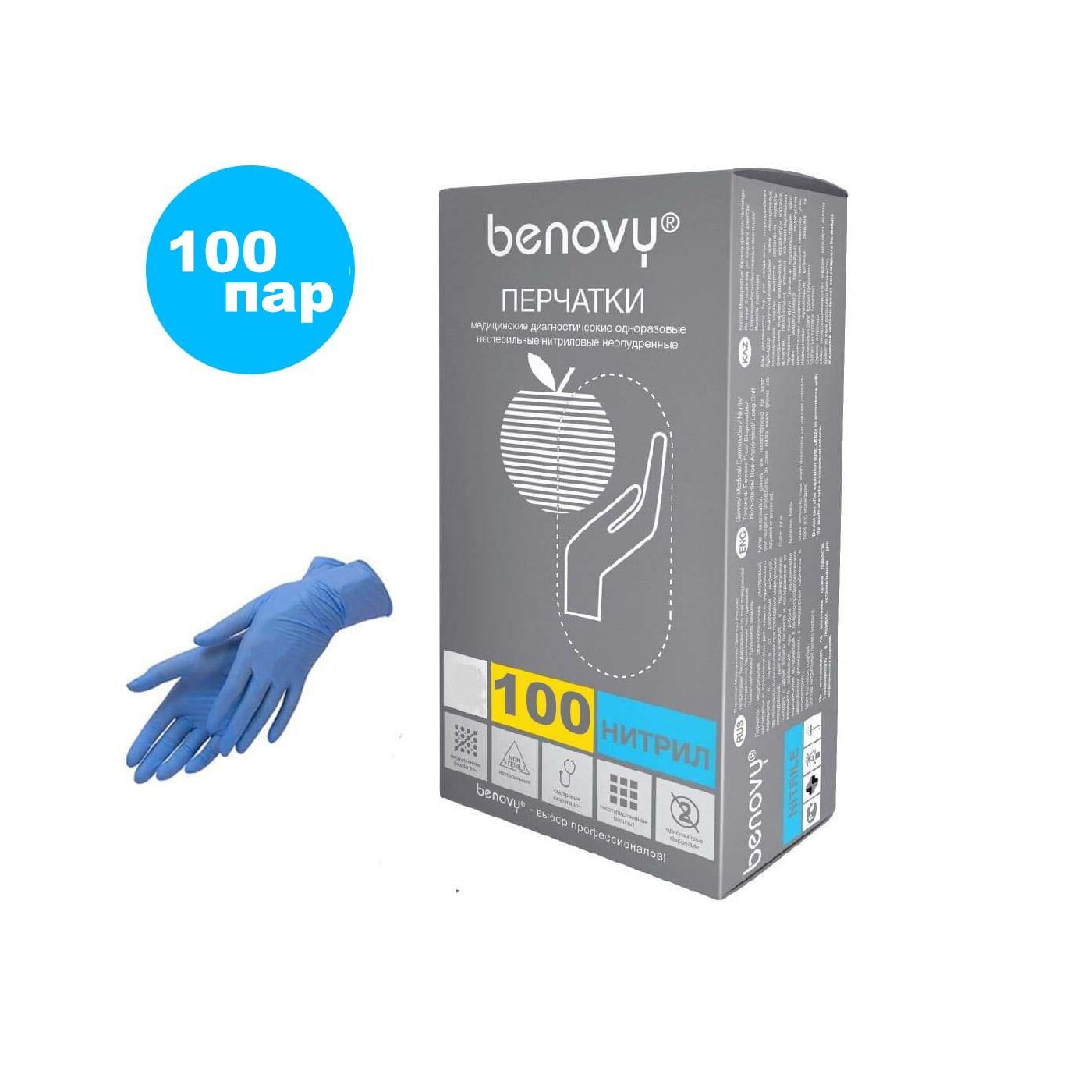Перчатки BENOVY нитрил голубые L (100 пар)