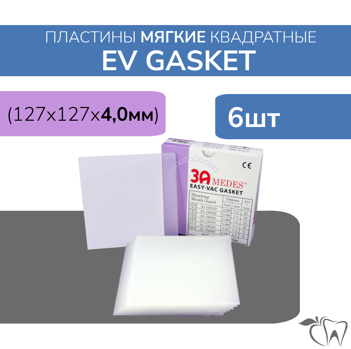 EV Gasket (Гаскет) мягкие 4.0 мм пластины для шин/капп квадратные 6 шт 3A Medes