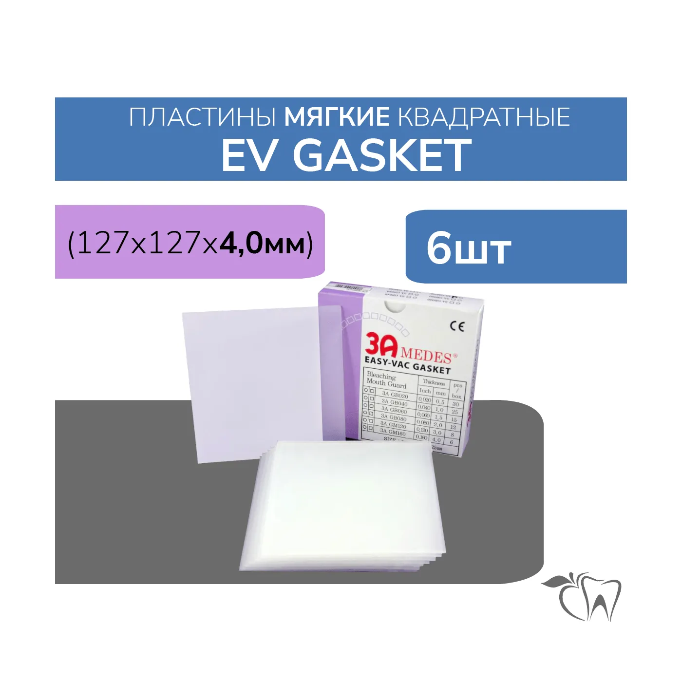 EV Gasket (Гаскет) мягкие 4.0 мм пластины для шин/капп квадратные 6 шт 3A Medes