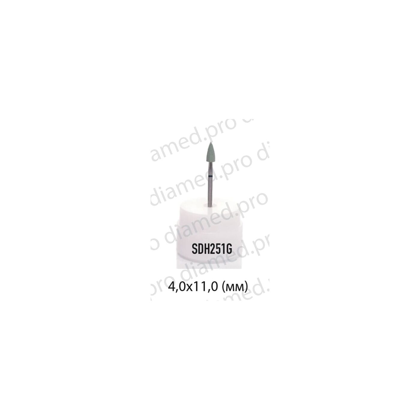 Камень алмазный с керамической связкой для обработки всех видов керамики (вкл. ZrO2). Пуля, зеленый 4х11 (Китай)